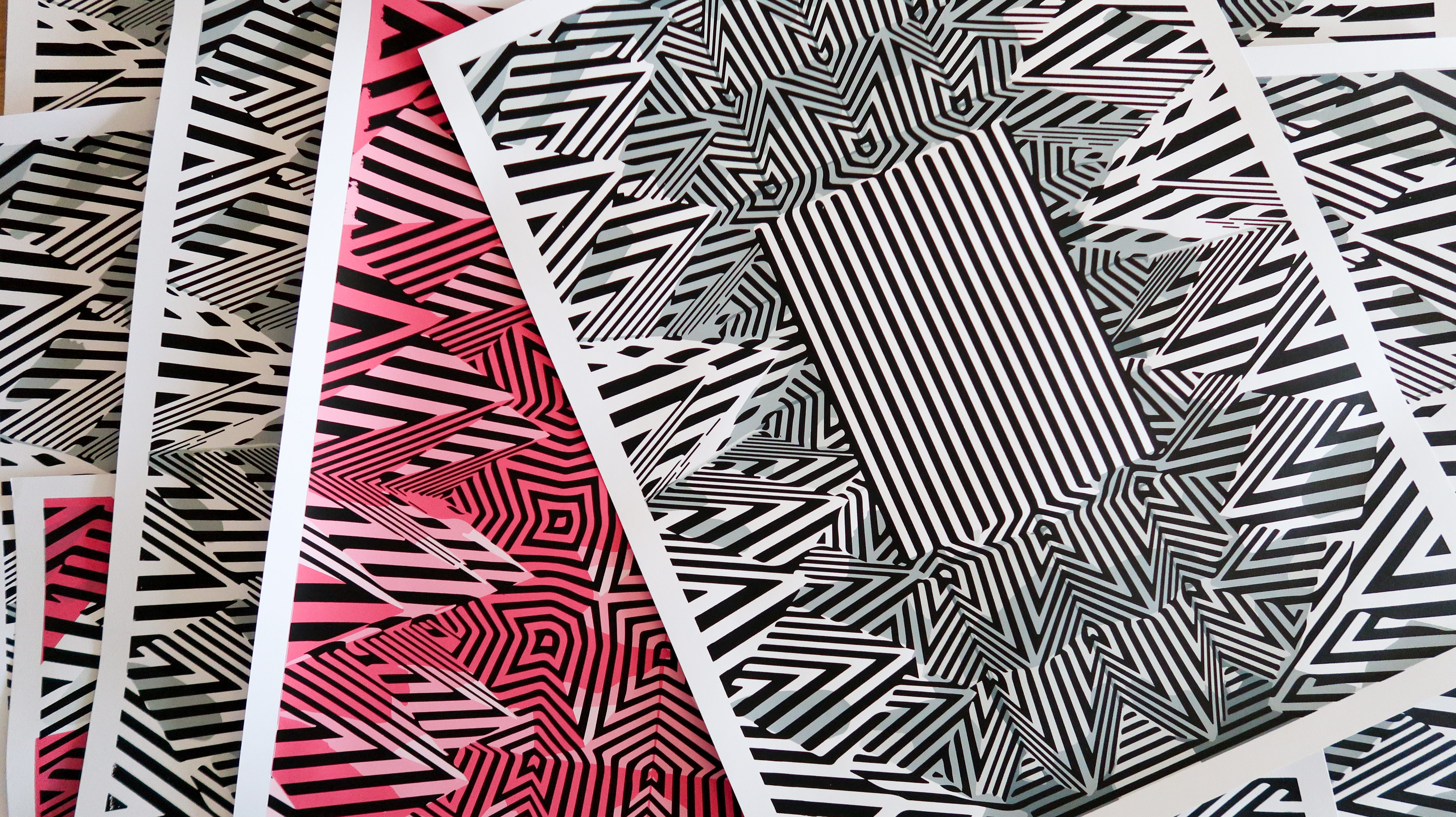 Inspired by humor, the built environment and the randomness of everyday life, his work is based on a long practice of live sketching his surroundings through bold black lines and the interest in craft. Explorative with his technique, he recently began mesh-printing art prints created from experimenting with combinations of hand drawings, 3D modeling and digital illustration. Through this process, he introduces color into his work, which serves to emphasize the highly contrasting elements of his work