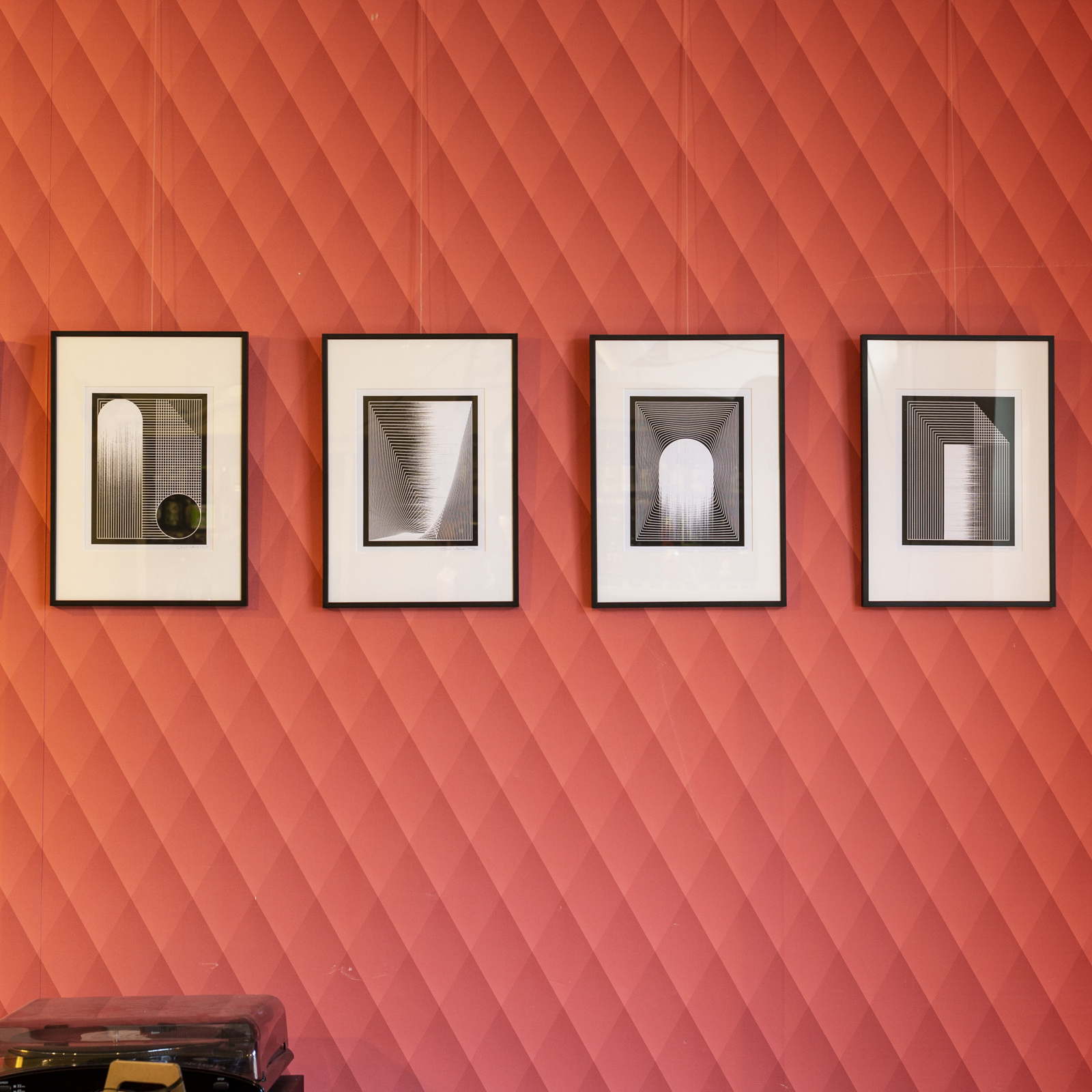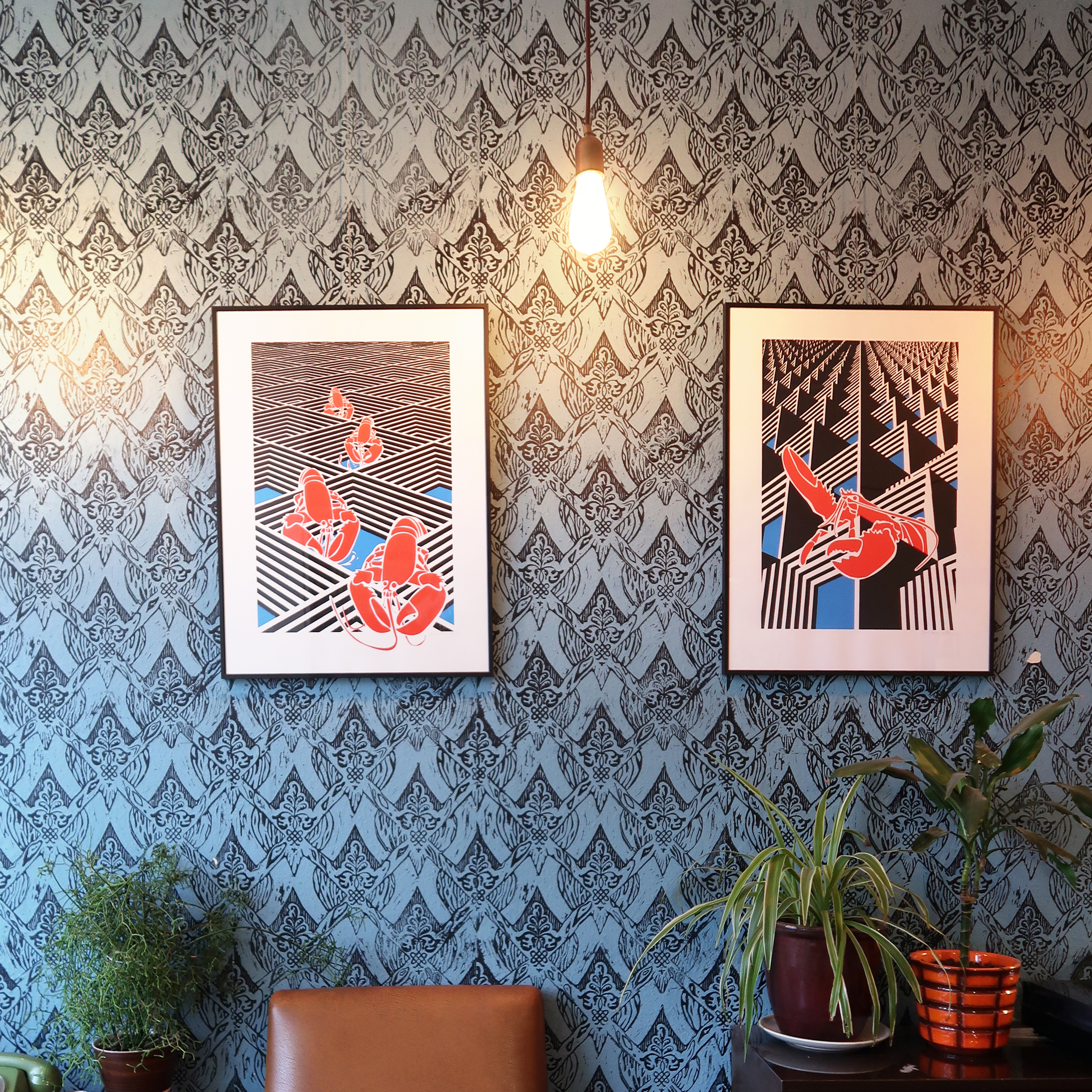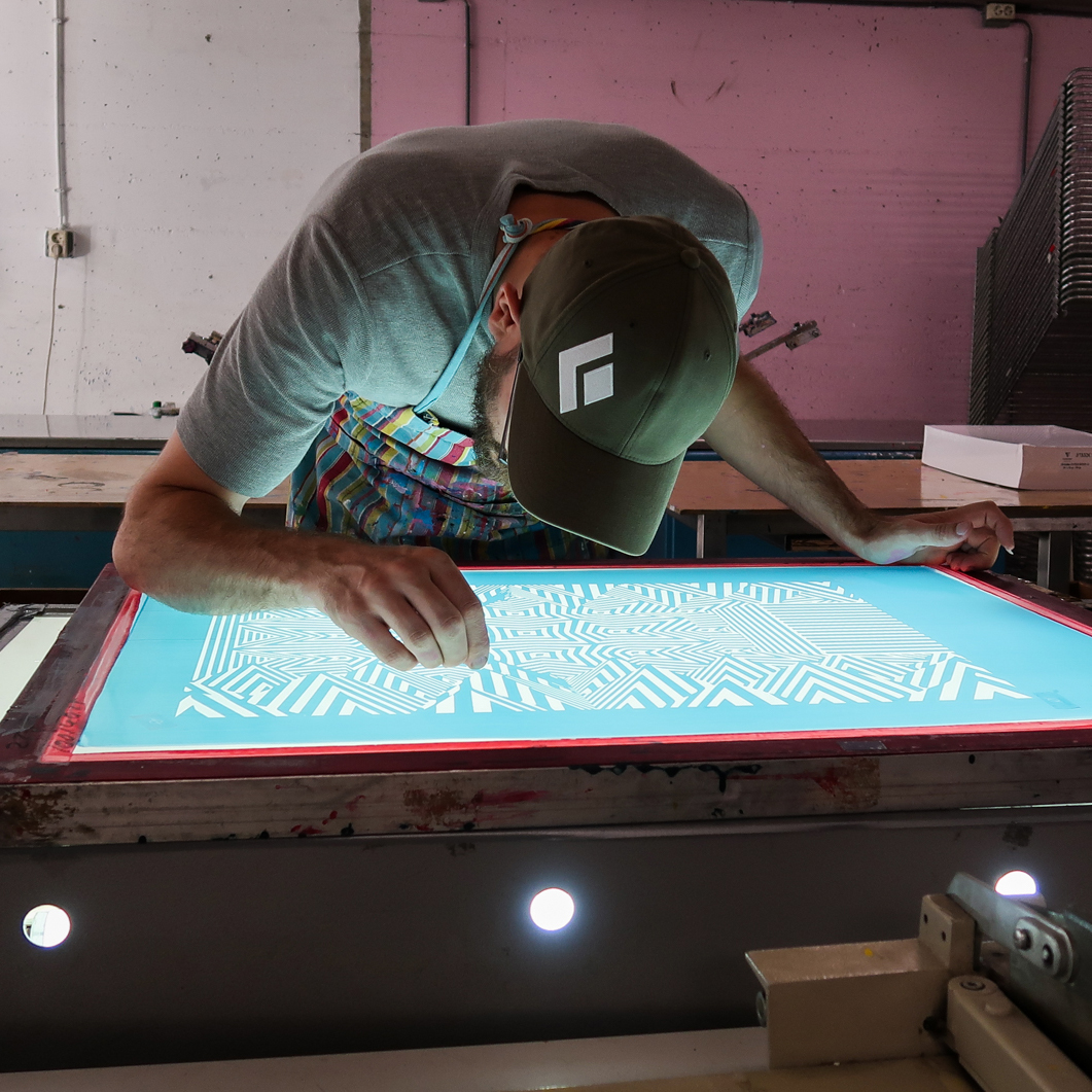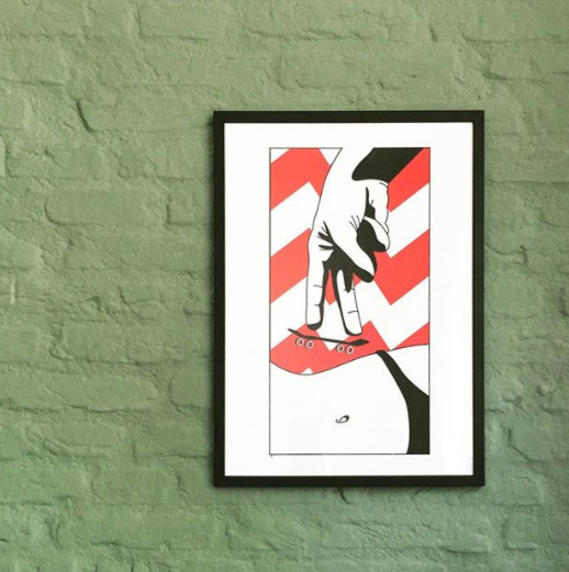 Inspired by humor, the built environment and the randomness of everyday life, his work is based on a long practice of live sketching his surroundings through bold black lines and the interest in craft. Explorative with his technique, he recently began mesh-printing art prints created from experimenting with combinations of hand drawings, 3D modeling and digital illustration. Through this process, he introduces color into his work, which serves to emphasize the highly contrasting elements of his work