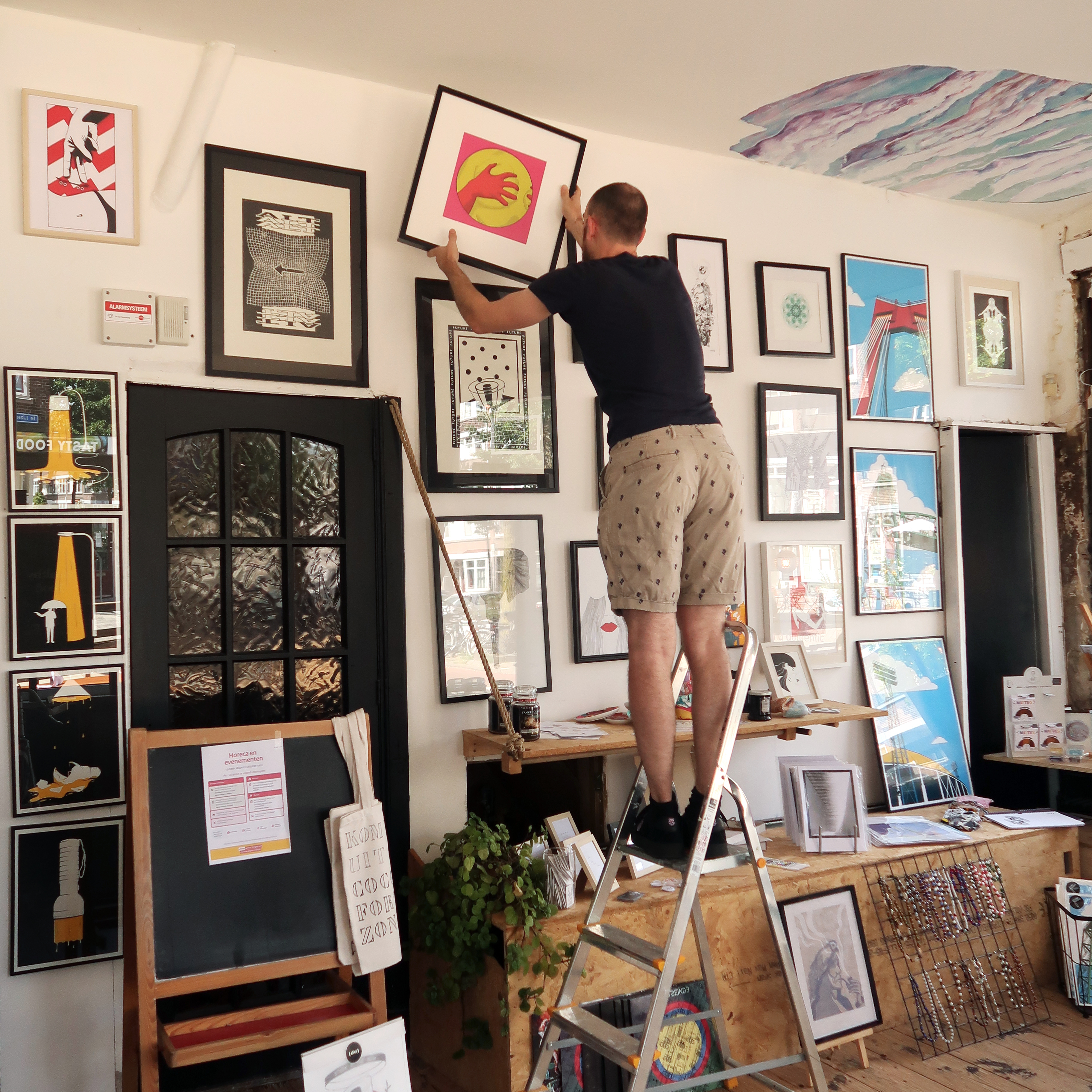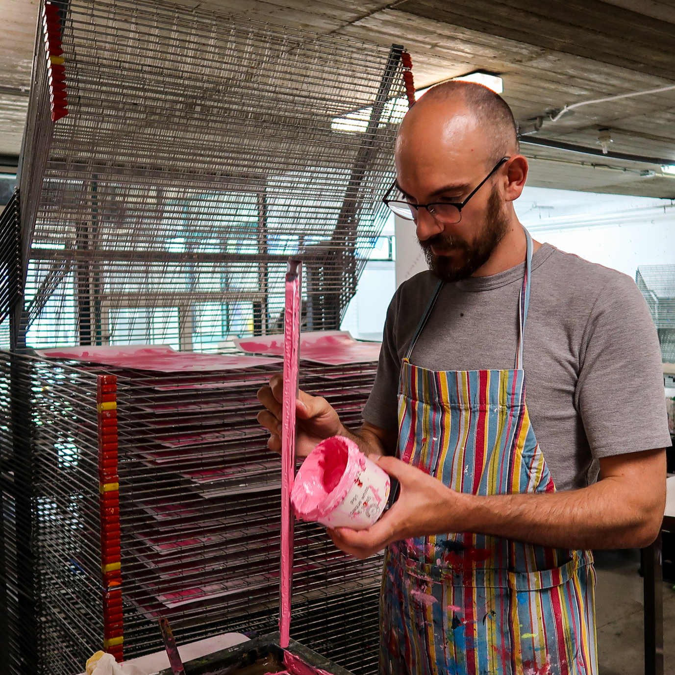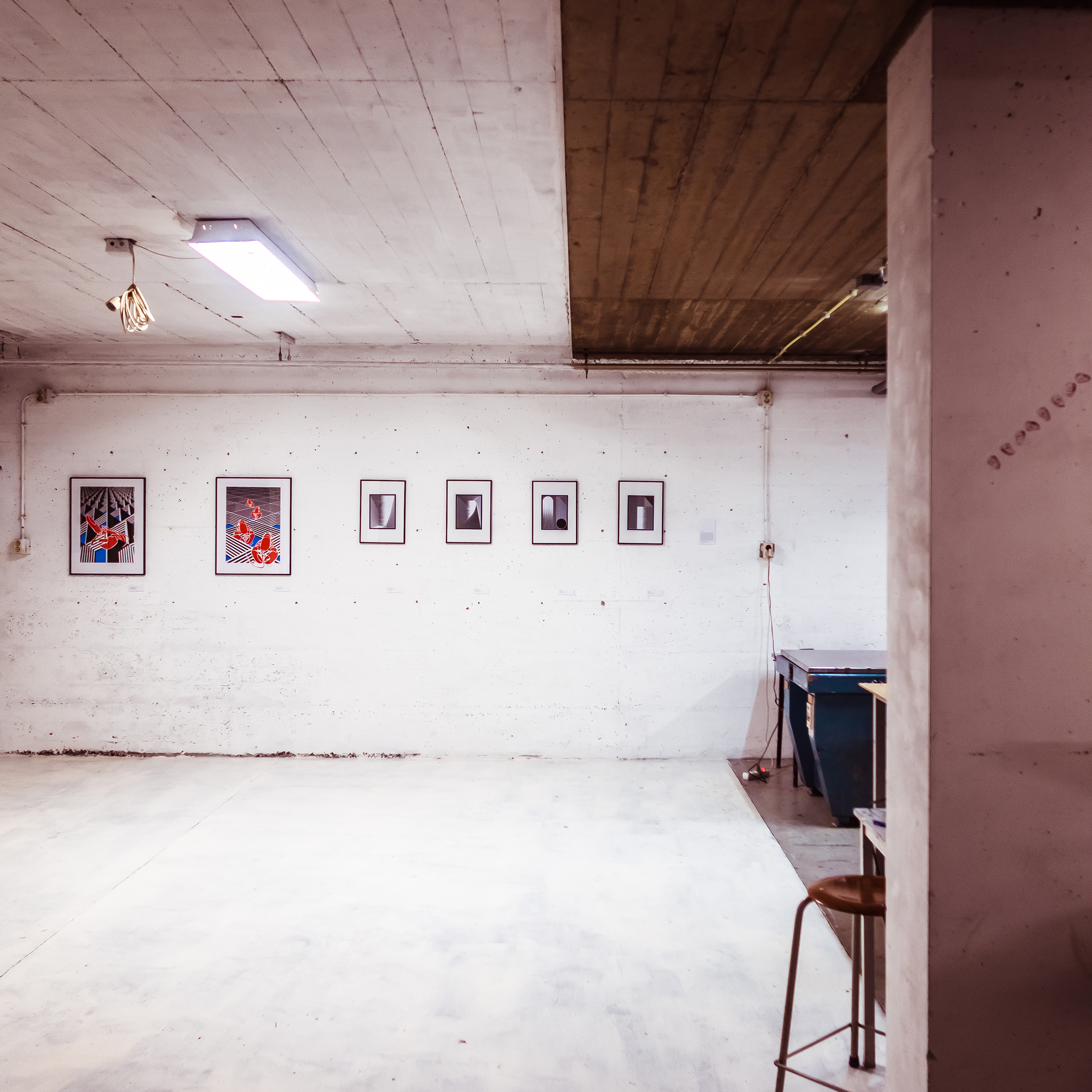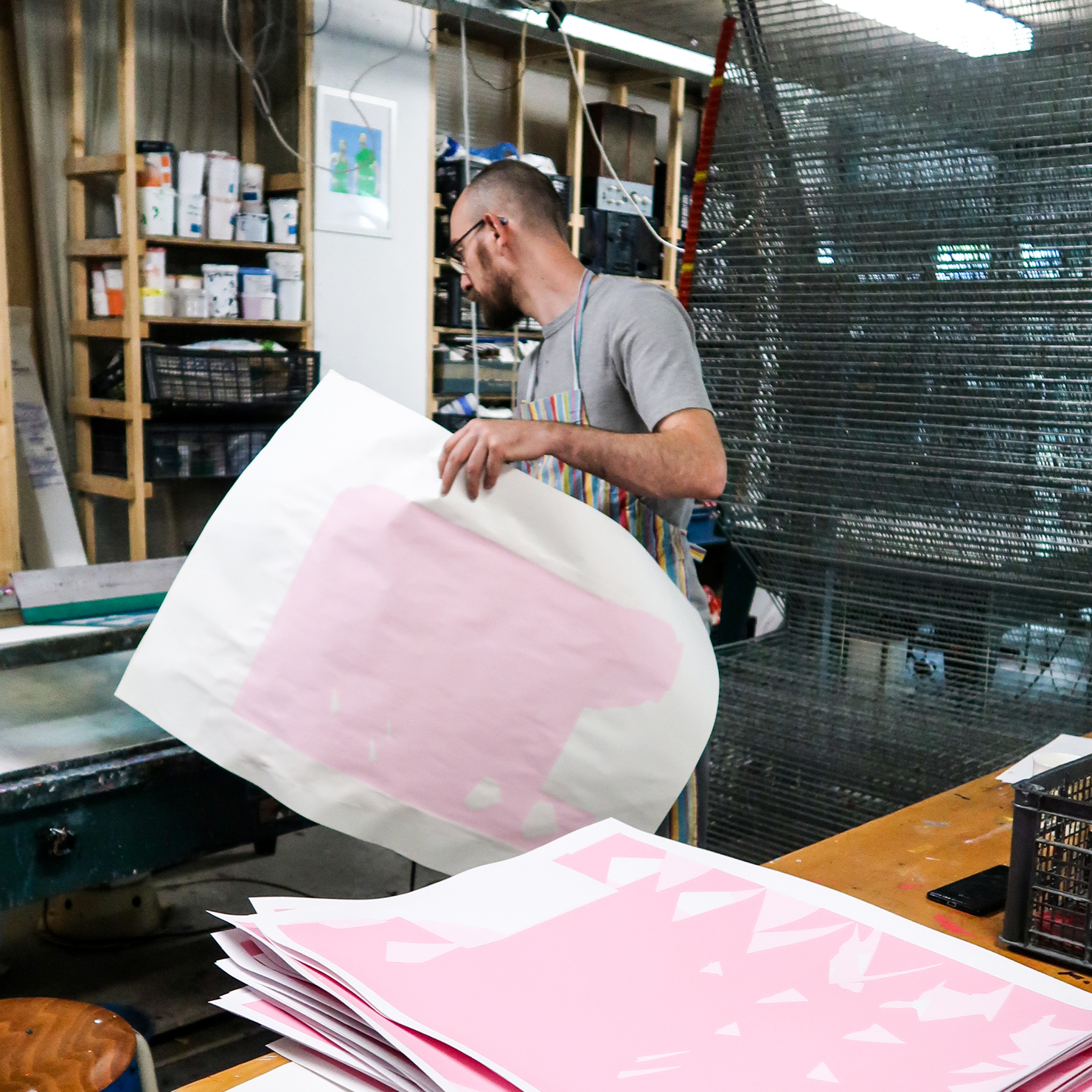 Inspired by humor, the built environment and the randomness of everyday life, his work is based on a long practice of live sketching his surroundings through bold black lines and the interest in craft. Explorative with his technique, he recently began mesh-printing art prints created from experimenting with combinations of hand drawings, 3D modeling and digital illustration. Through this process, he introduces color into his work, which serves to emphasize the highly contrasting elements of his work